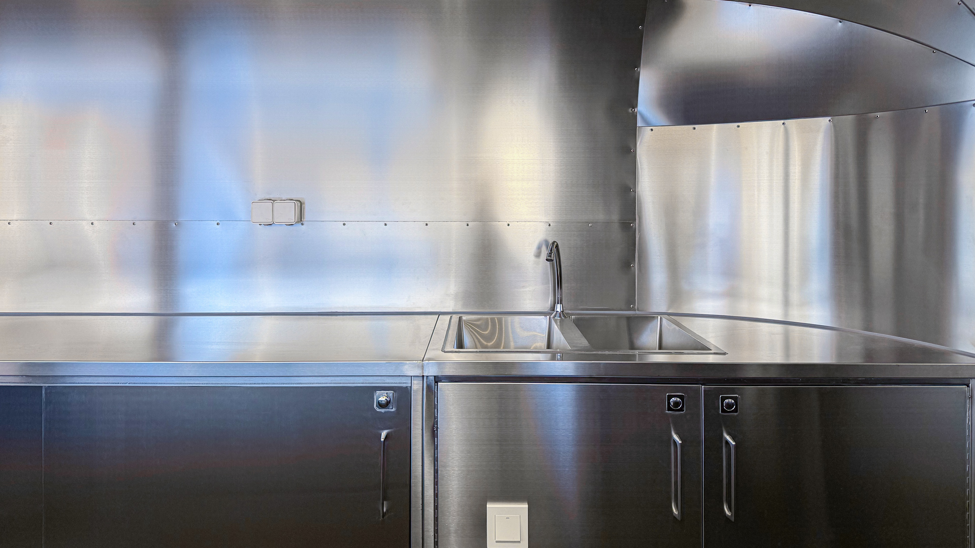 Stainless steel countertops and cabinets