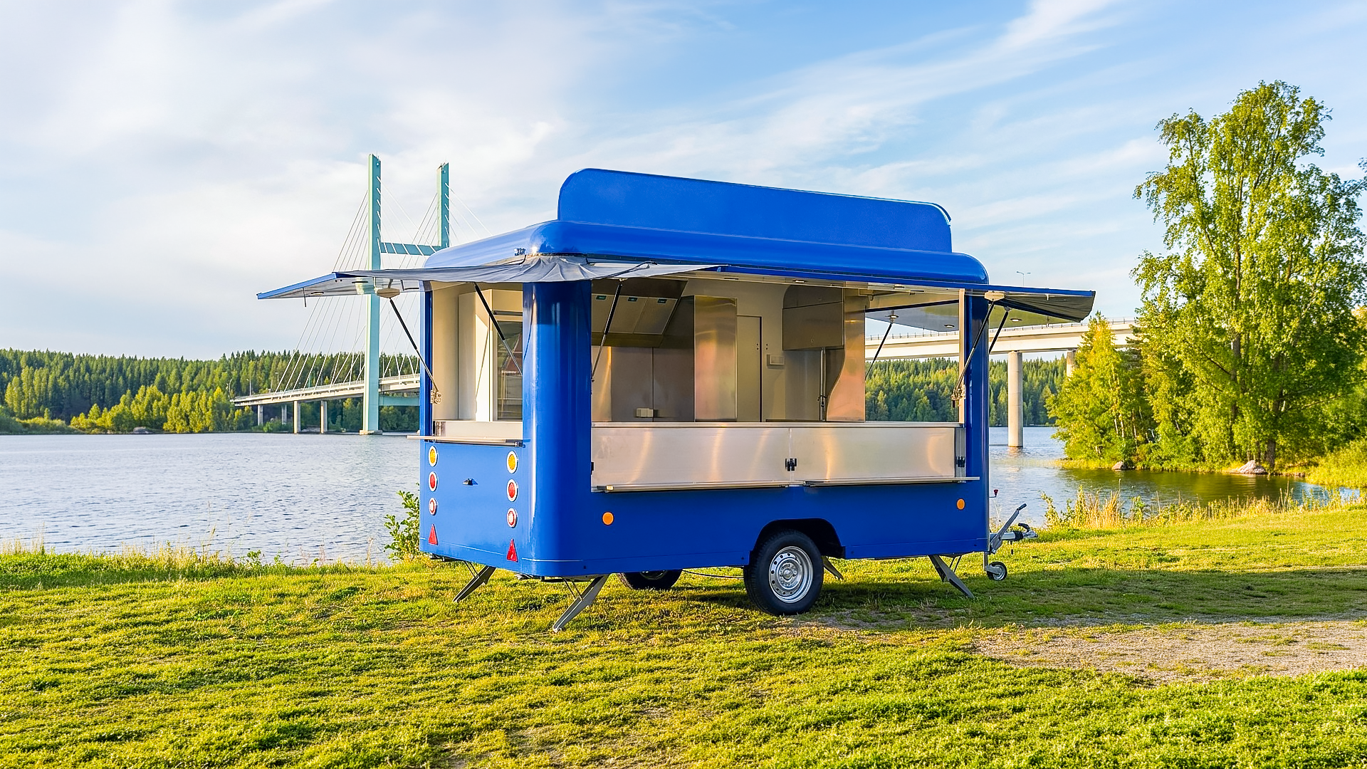 Our flagship trailer is available in sizes ranging from 3 to 6 meters, with the most customization options. With rounded corners, a low floor, and large openings, this is our most versatile platform for professional sales and street food use.