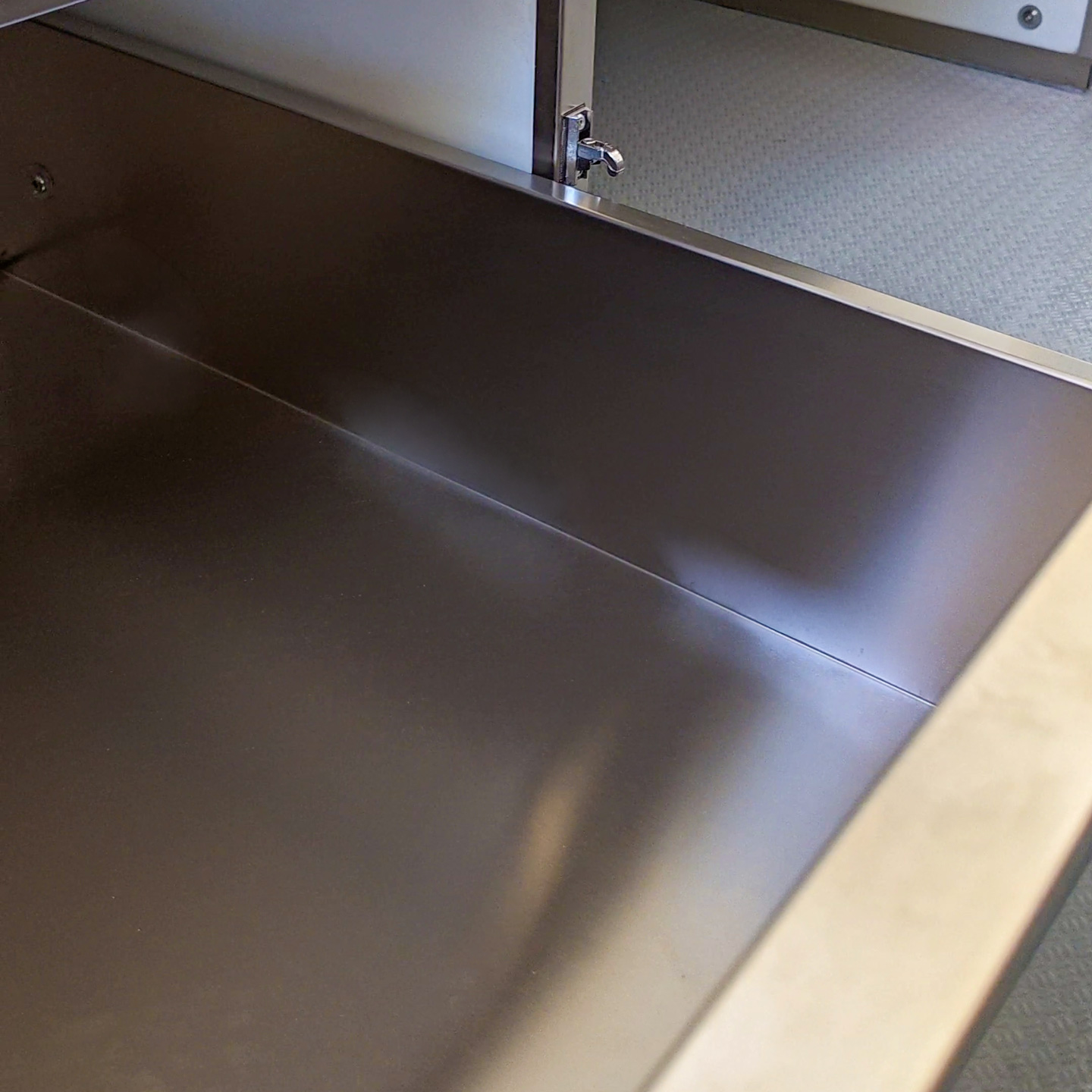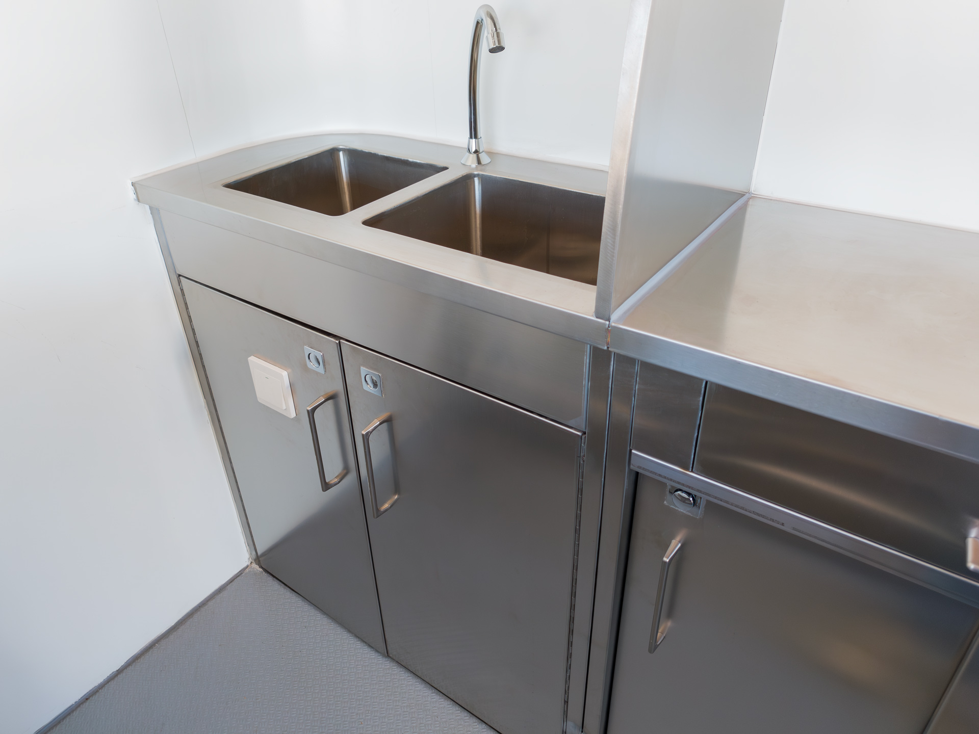 Sinks, water pump, heater, clean and waste water tanks, plumbing, inlet & outlet